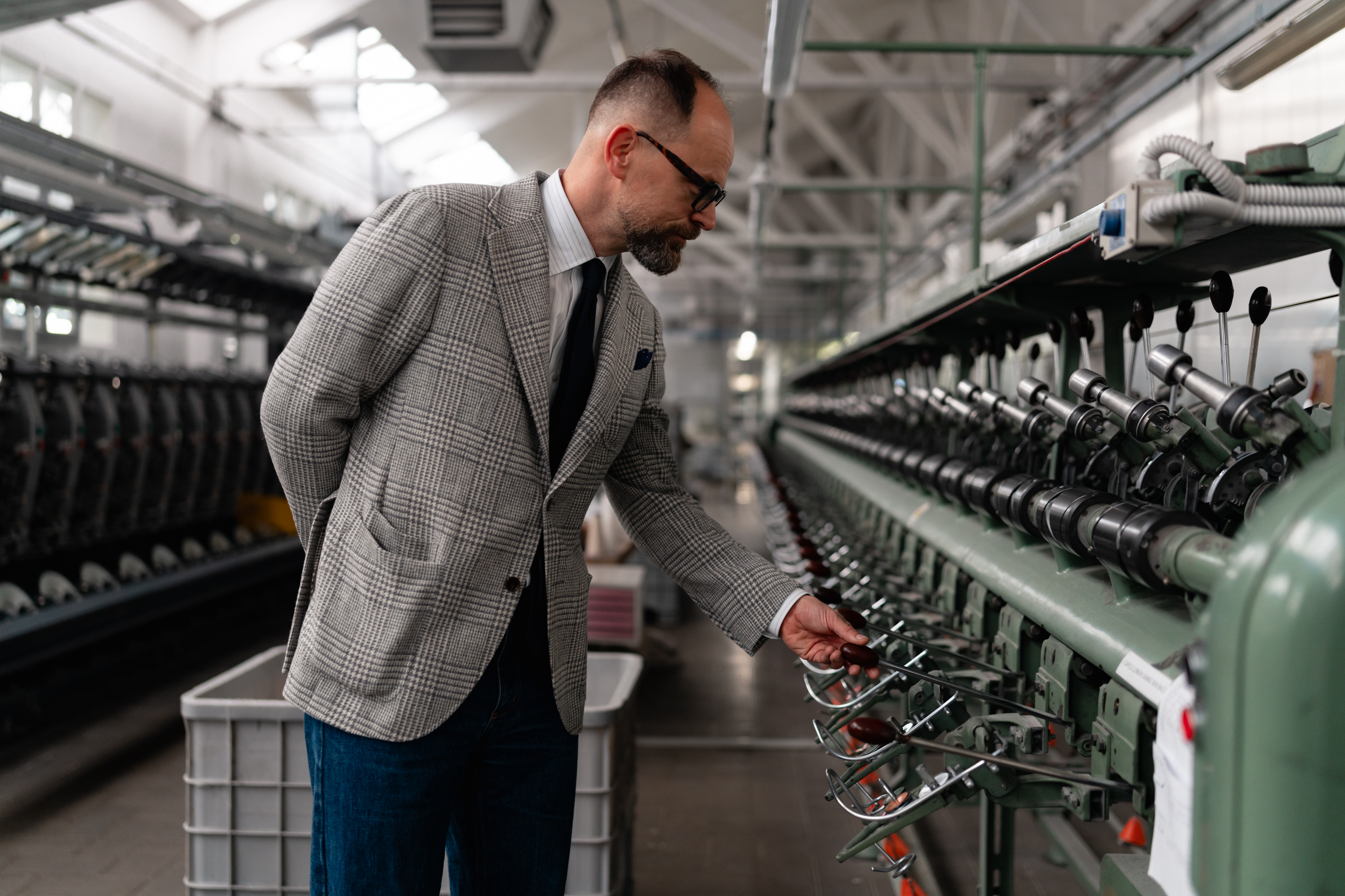 Before washing, almost every wool fabric is stiff and rough – it is the way it is treated with water that determines how soft it will be in the end. Here, they do it Italian style – they soften it strongly and intensively. In fact, they even have a special machine, the “tumbler,” which not only immerses the fabric in water but also breaks it down by spinning – apparently, if you leave the fabric inside for 10 minutes, you can completely destroy it; just a few minutes is enough to slightly break and lift the fibers to the surface, giving it a pleasant finish.