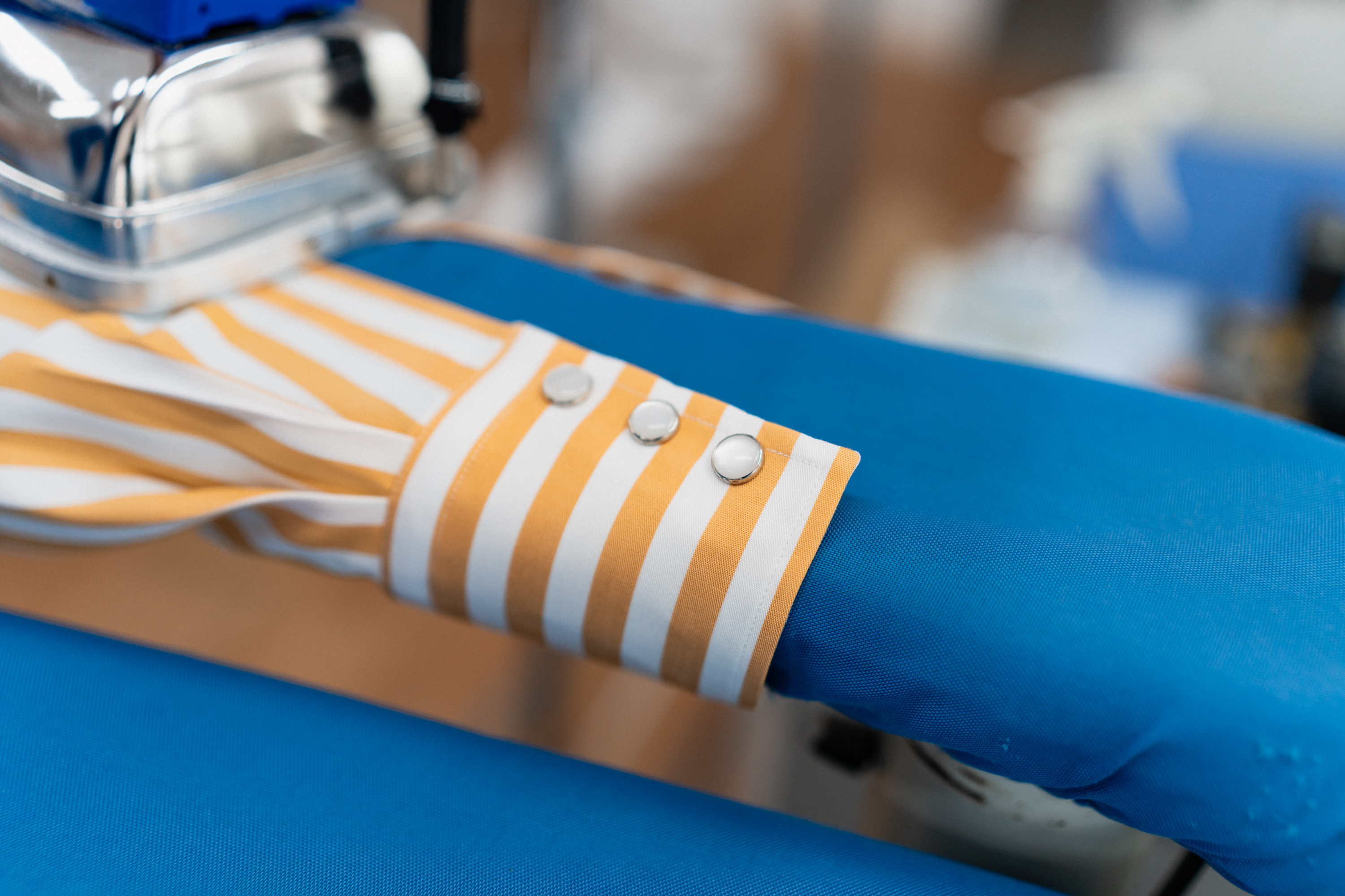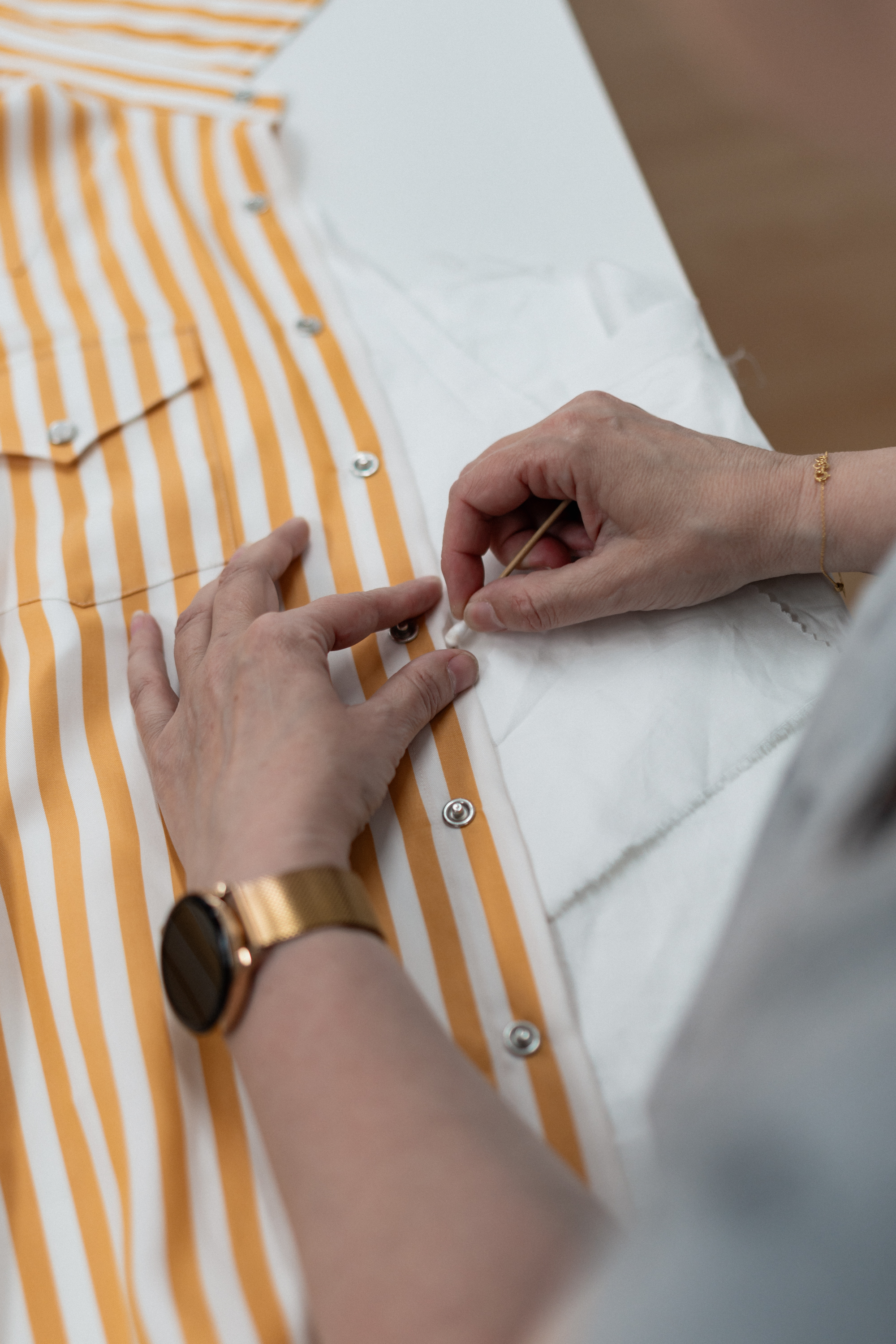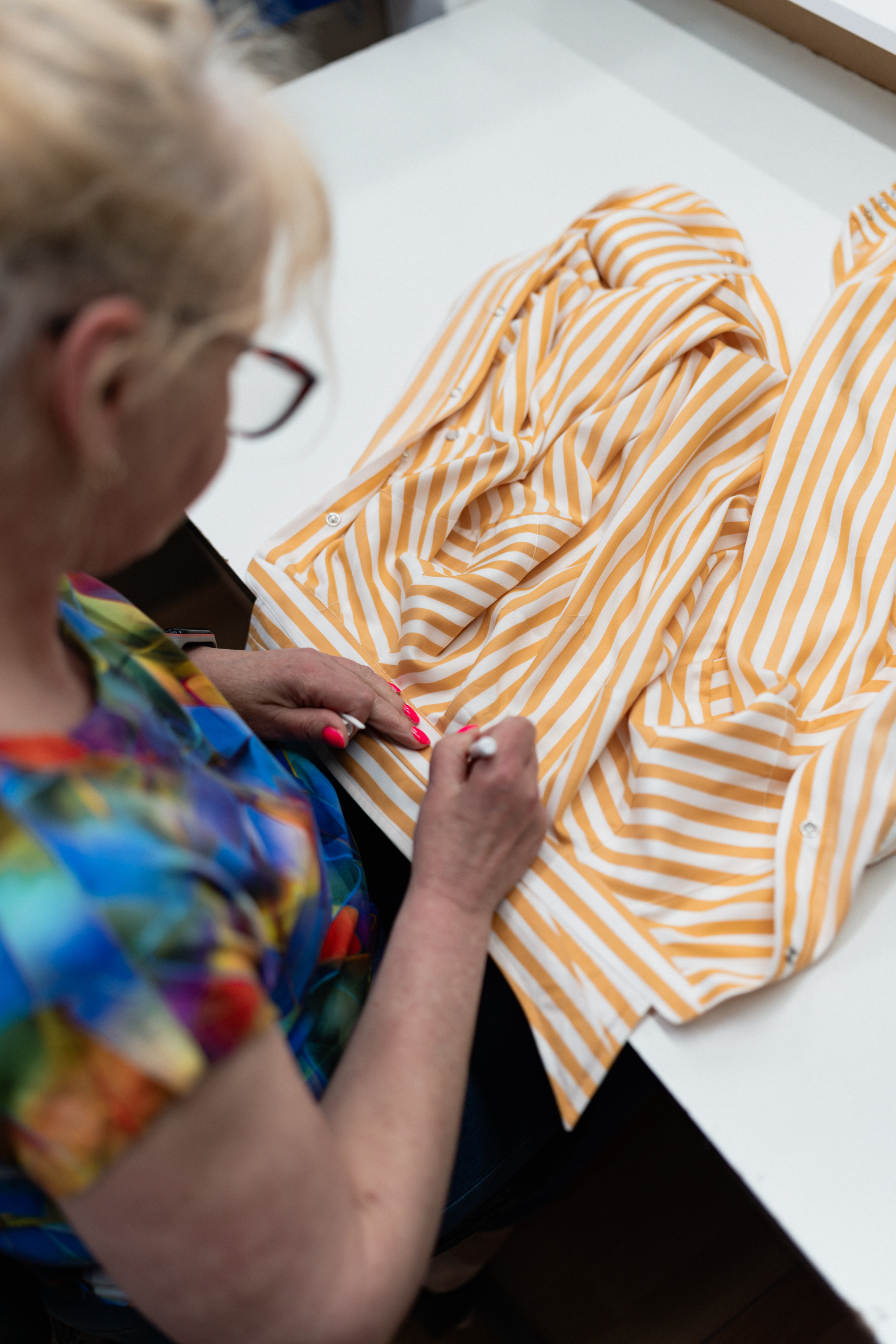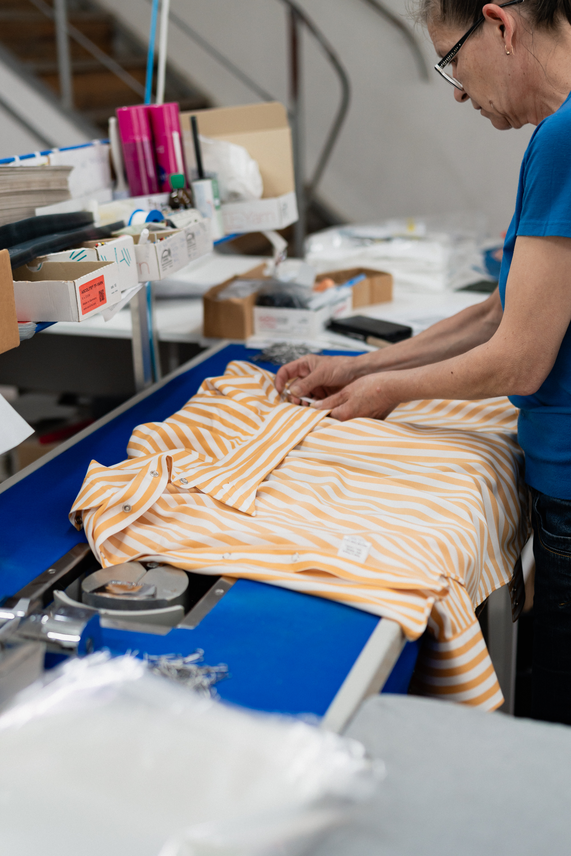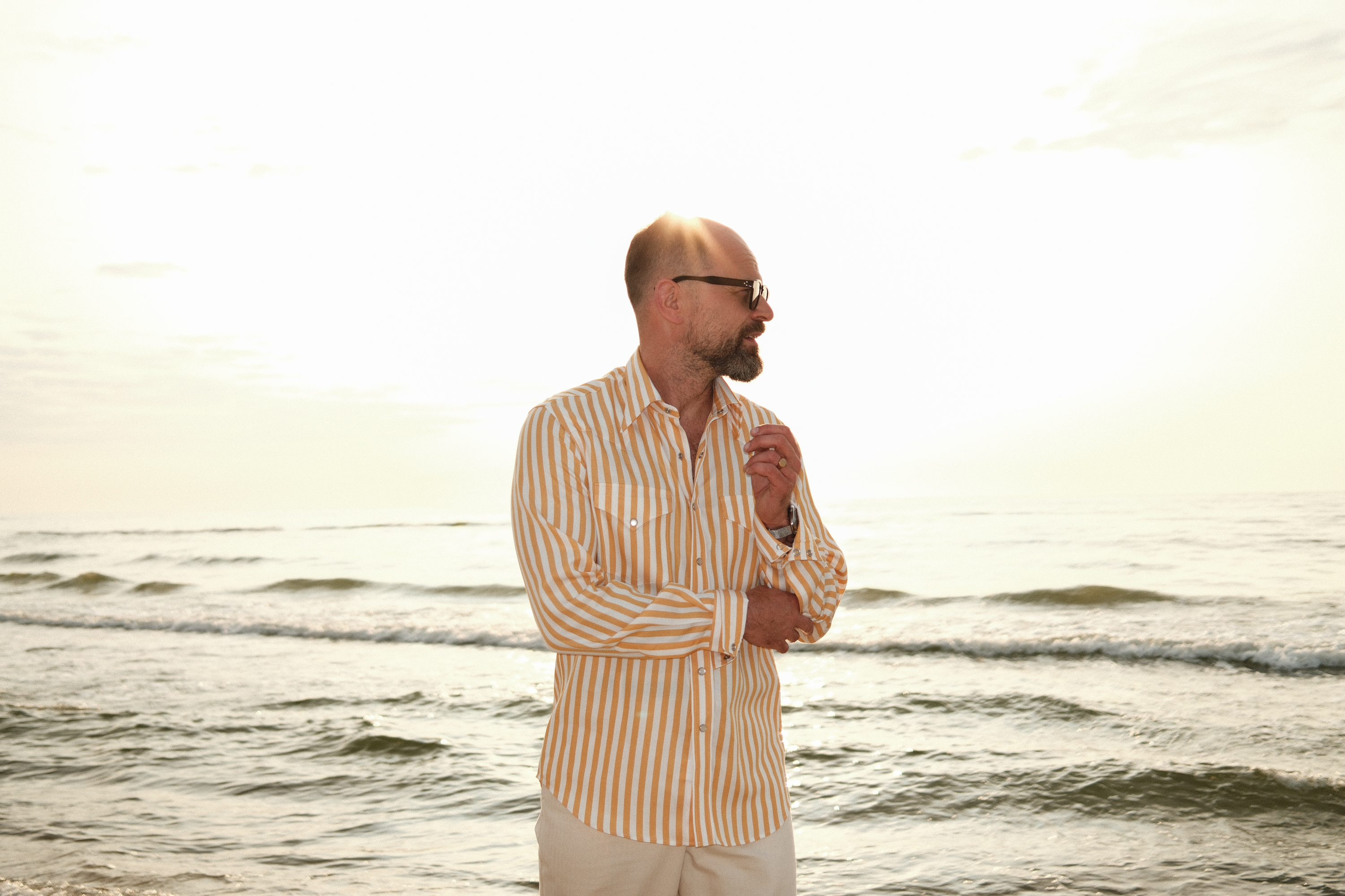 Zacząć mogę na przykład od anegdoty, że to chyba pierwsza koszula w historii, której cały proces szycia, wszystkie etapy, zobaczyliśmy z Tomkiem na własne oczy. A ta sztuka, którą widzicie na zdjęciach powyżej, pojechała z nami na Mierzeję Wiślaną prosto z produkcji!