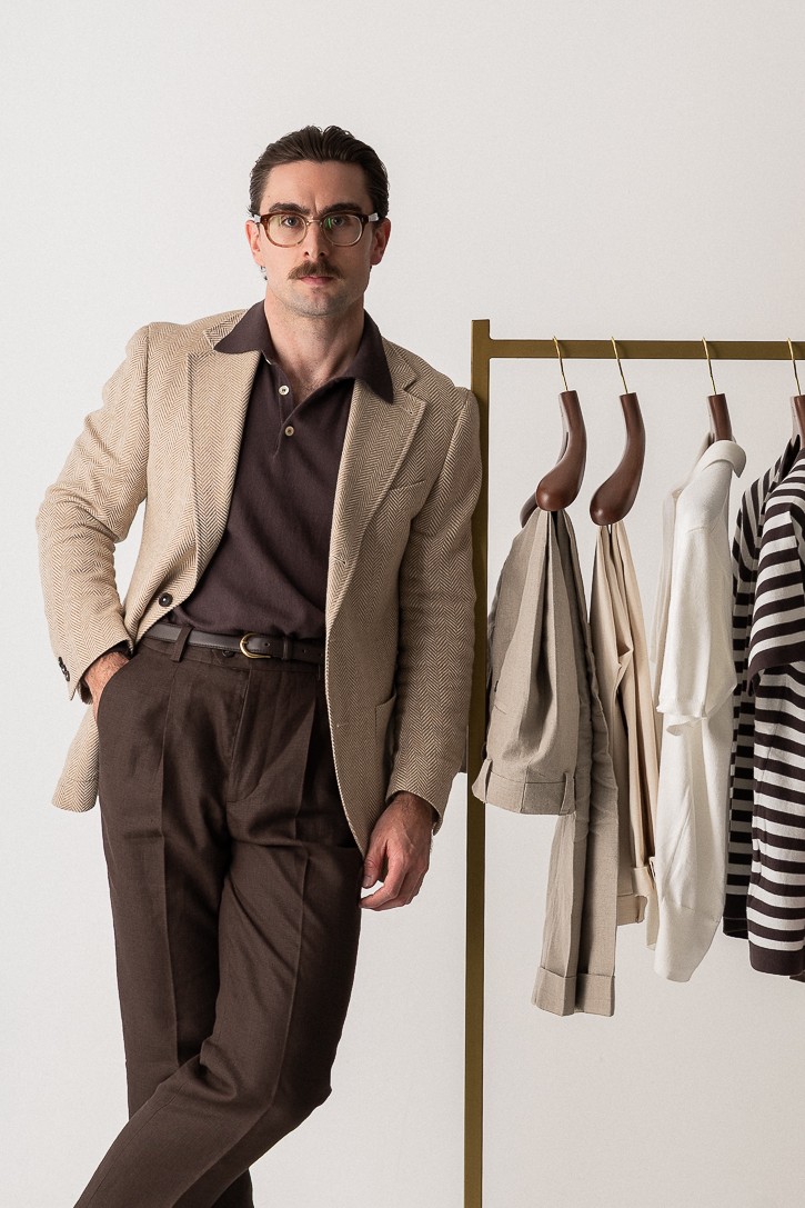 Starting off with the background - in this case, it’s cream, not stark white, creating a lower contrast with the green and brown stripes. The fabric is a soft washed cotton poplin with a delicate texture; that further softens the colors. To leave no doubt about what this shirt can do, we topped it off with a proper collar in our new style: longer, more pointed, and perfectly suited to be worn with a tie. It looks great with the collar stays taken off for that vintage-but-nonchalant flair.